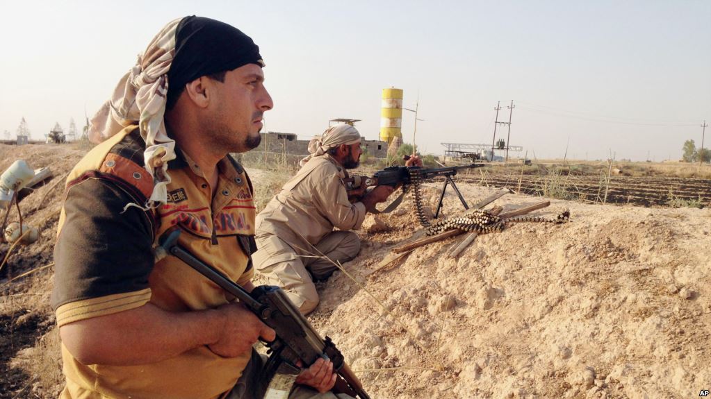 نیروهای حشد شعبی در نزدیکی مرز عراق و سوریه با اعضای گروه “دولت اسلامی” (داعش) می جنگند.