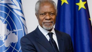 او در سال ۲۰۰۱ برای کمک به تقویت نقش سازمان ملل برنده جایزه نوبل صلح شد.